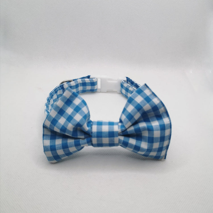 Blue and White Gingham Dog Collar