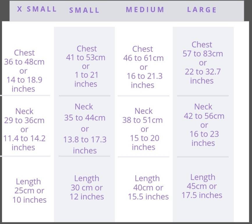 Collar available in extra small to large. Please measure the circumference of your dog's neck.